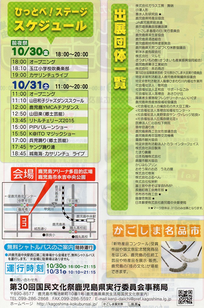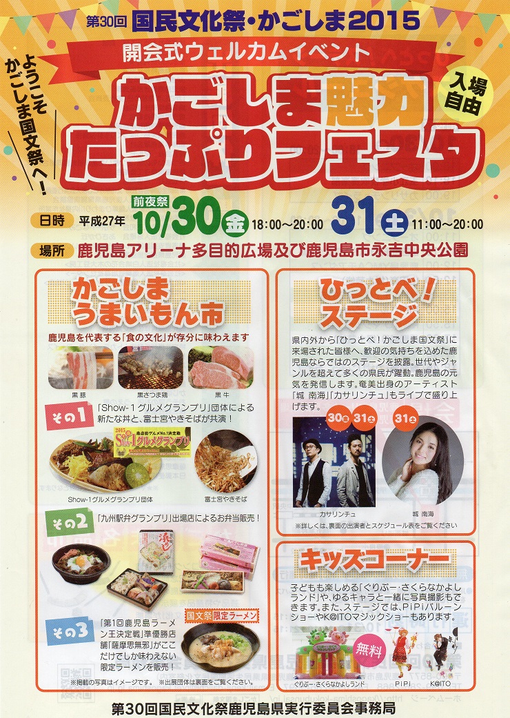 「第30回国民文化祭・かごしま2015」の開会式の会場である「鹿児島アリーナ」の横にある多目的広場でお昼をした後、