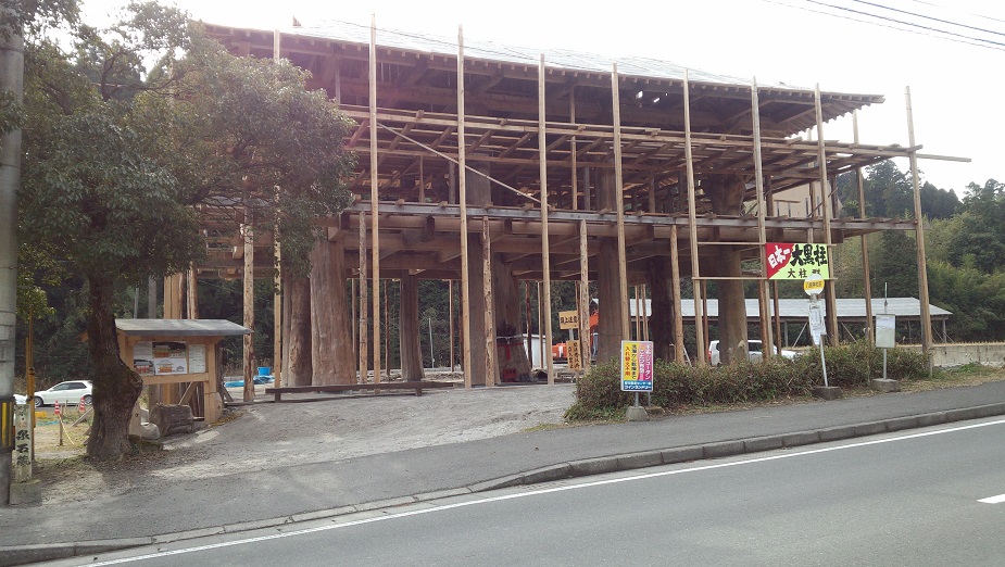 隣の敷地にすごいでっかい柱を使った建築中の建物がありました。