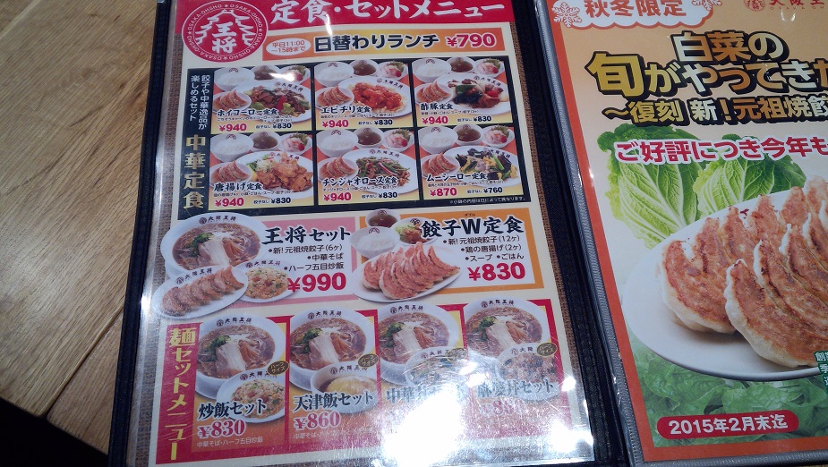 「王将セット」(餃子6個+ハーフ五目チャーハン+中華そば)を注文