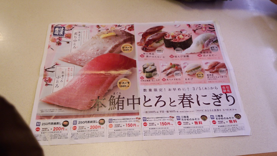 先日、チラシが入っていたので 「はま寿司」に行って来ました。