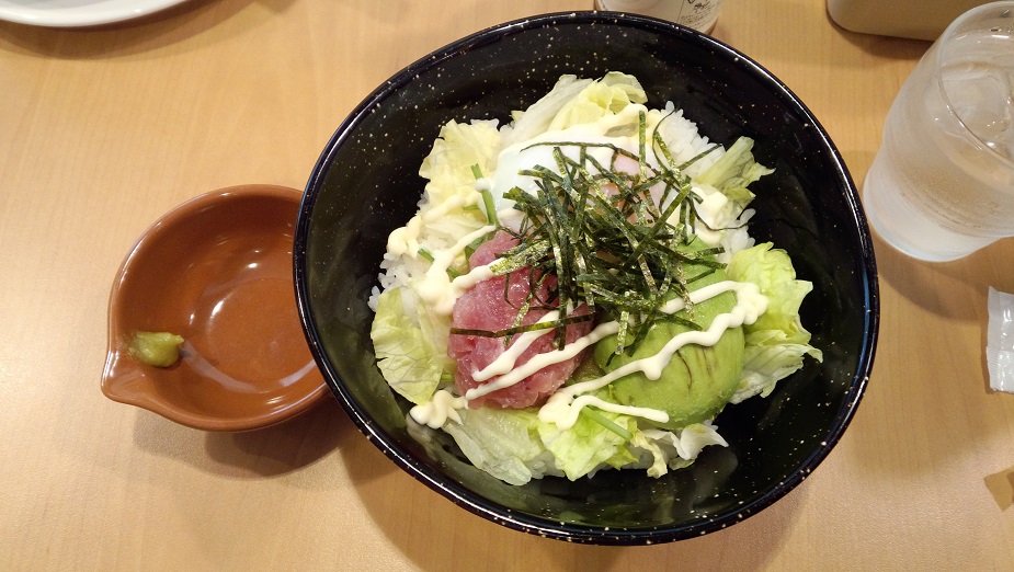 それは 「まぐろとアボカドのサラダごはん (温玉添え)」 という料理