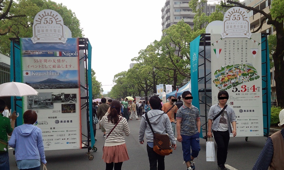 昨日と今日、「 かごしまの風と光とナポリ祭」がナポリ通りを歩行者天国にして