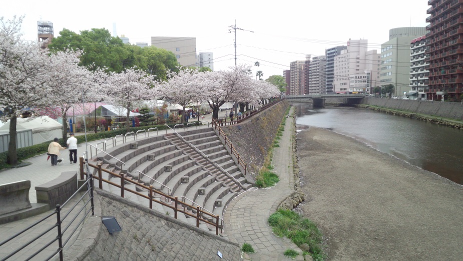 写真奥の橋より川下のほうでは先日紹介した「春!かごしま川物語_桜灯りと音の食彩市」が
