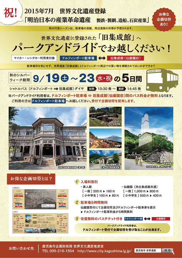 シャトルバスや周遊バスを利用して「旧集成館」に向かうシステムのことです。