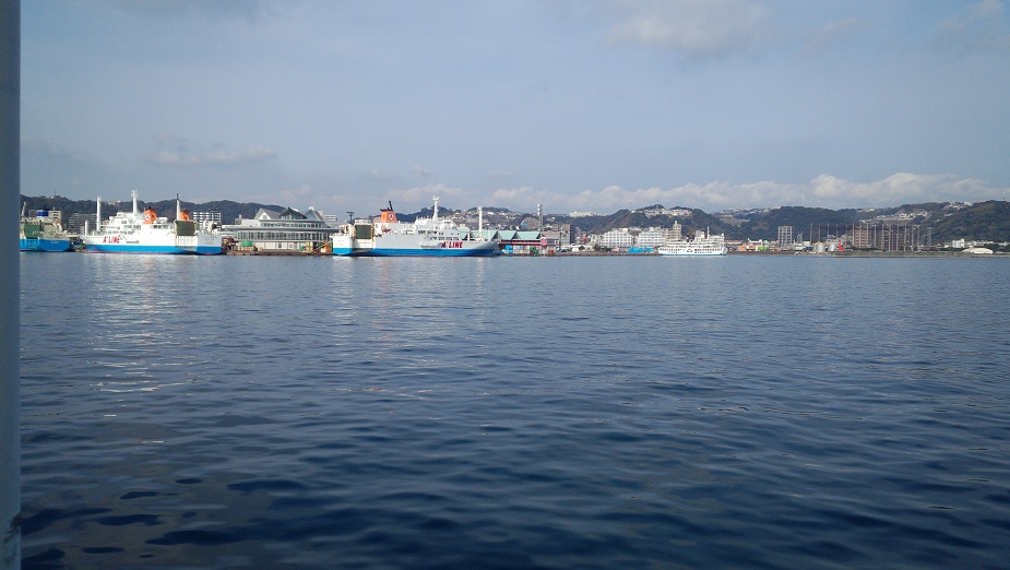 桜島のフェリー乗り場当たりを過ぎたころ 桜島フェリー乗り場に向かうクルージングでした。
