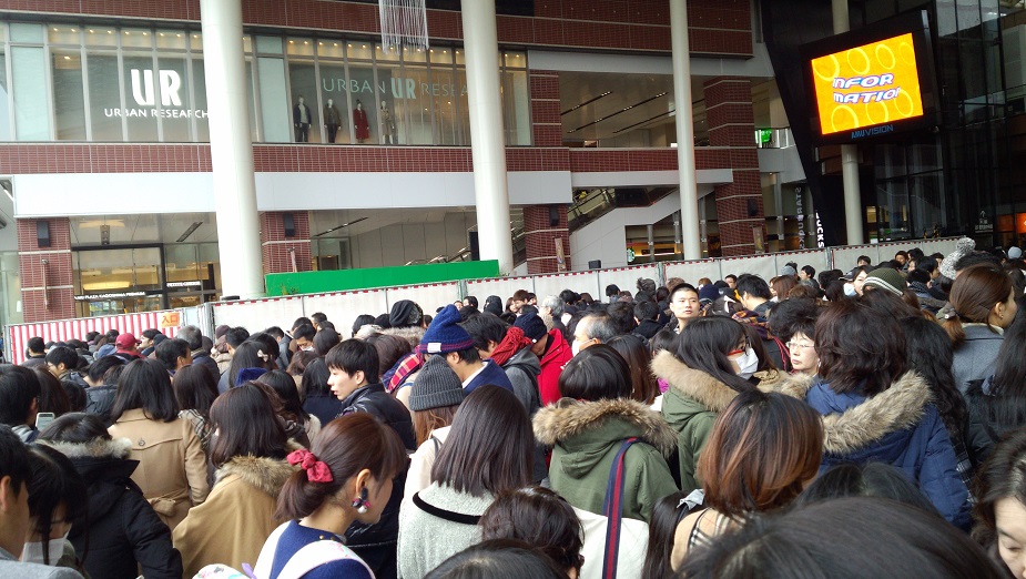 9:40発のシャトルバスに乗ってアミュに向かいましたが10時開店には間に合わなかった。