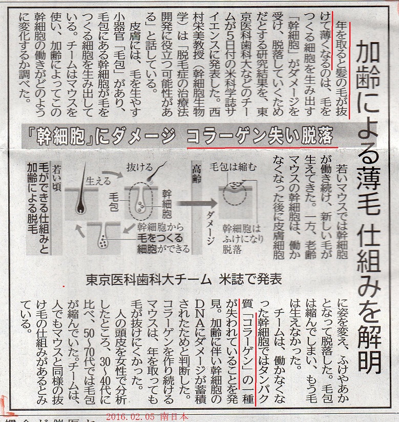 昨日書いた「抜け毛(薄毛)と コラーゲン」の 新聞記事をUPします。