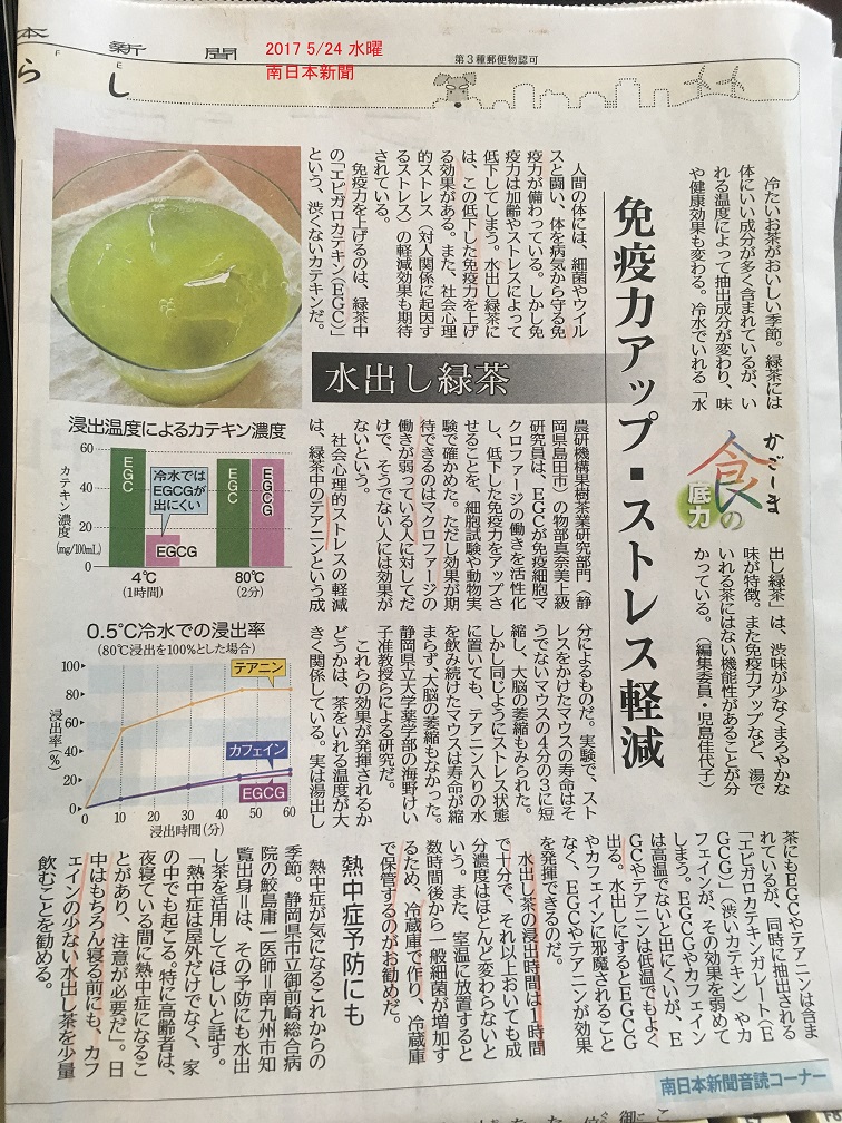 先月の新聞記事に「水出し緑茶」が
