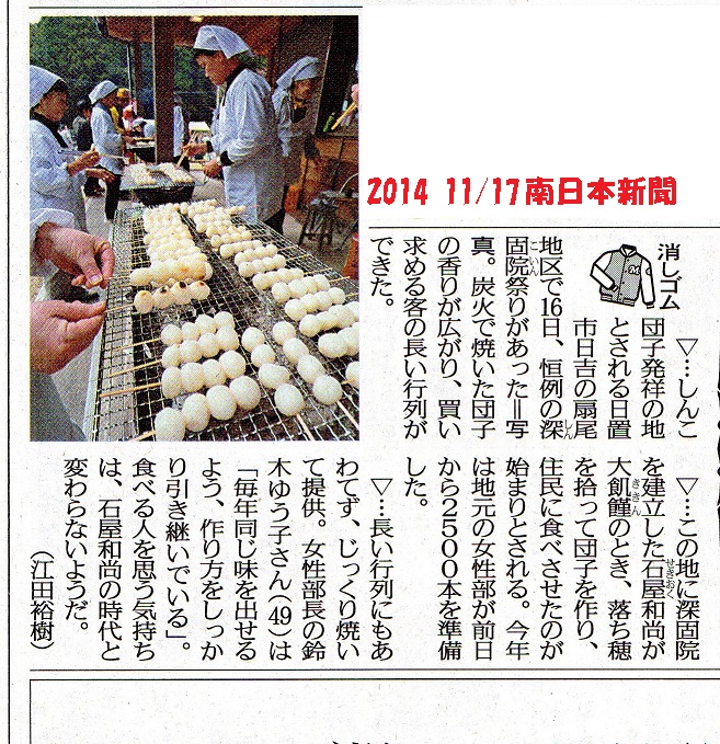 今日の新聞に「しんこ団子」の事が書いてあった。