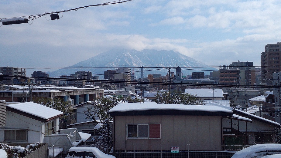 いつもは向うには桜島が見えるのですが、さすがに雪で見えませんでした。