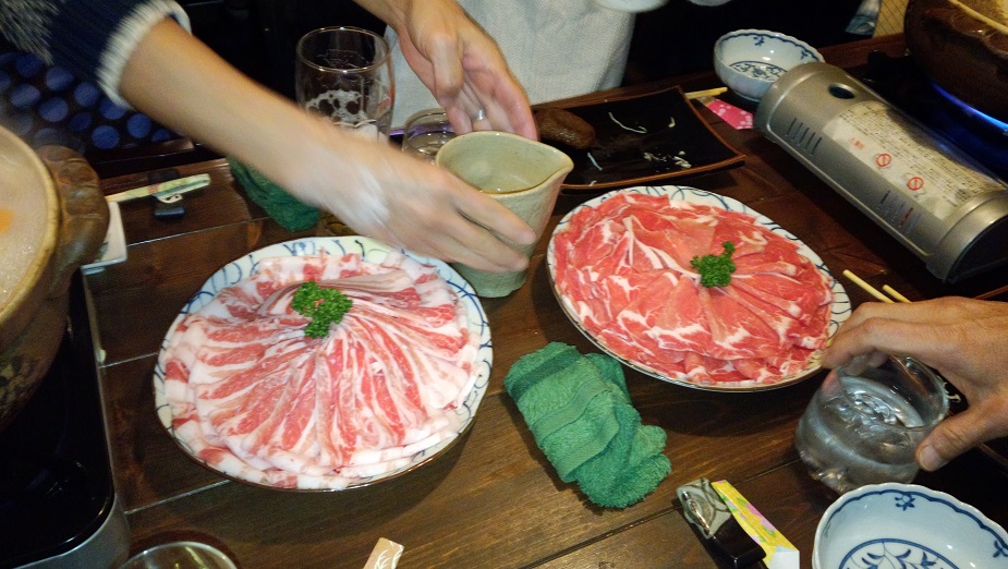 お肉は鍋に入れてしゃぶしゃぶにして、ゴマダレとポン酢の2種類で頂きました。