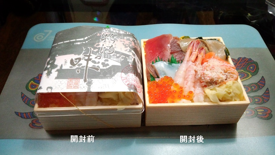 そこで買った弁当がお昼となった。「新潟の味」とかいう弁当です。