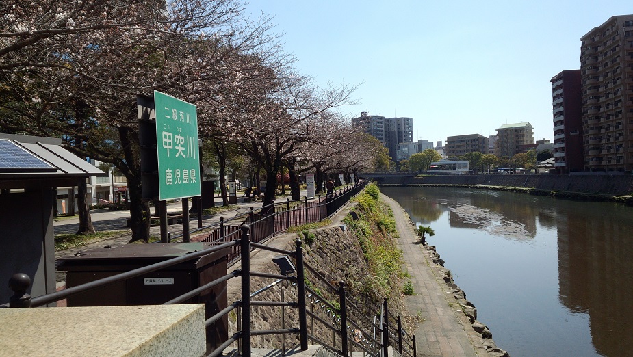 帰りに甲突川河畔に寄ったら、桜はこんな感じで咲いていました。