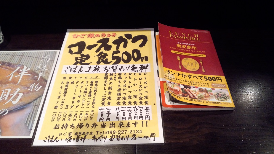 ロースかつ定食はLUNCH PASSPORTがなくても ¥500です。