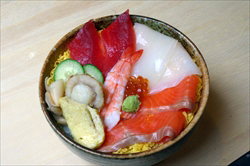 海鮮丼¥580を食べた。ちょうど腹八分の量だったが、も少し食べたかった。