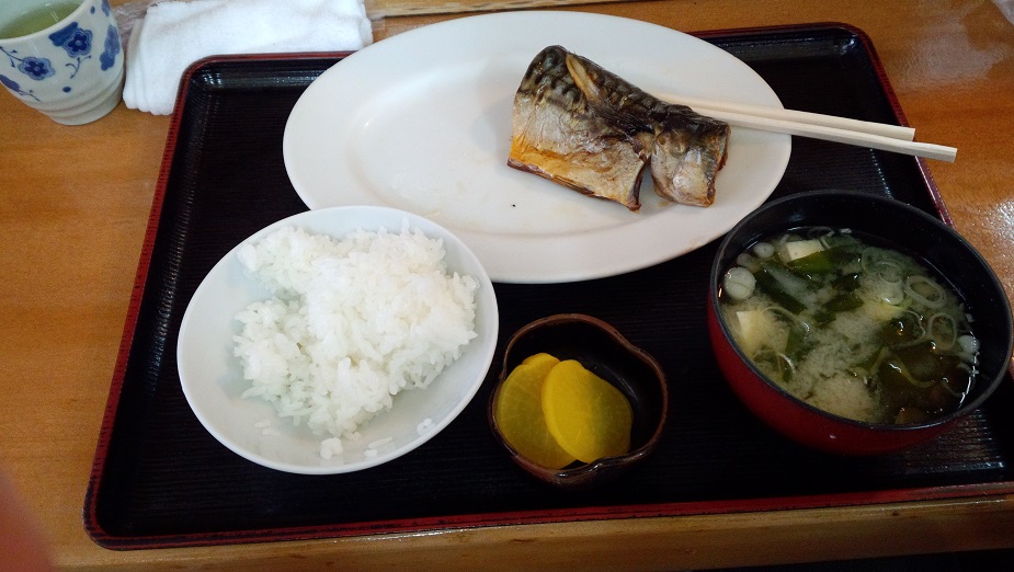 「塩サバ定食」¥850なんですが、半分食べたところで