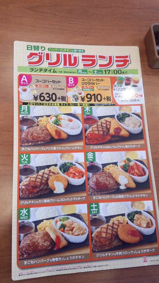 前回は日曜に行ったので グリルランチはなかったのですが、