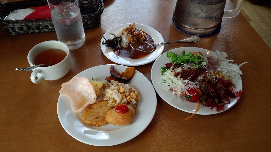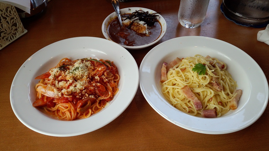 今日のメインは厚切りベーコンペペロンチーノ(右)