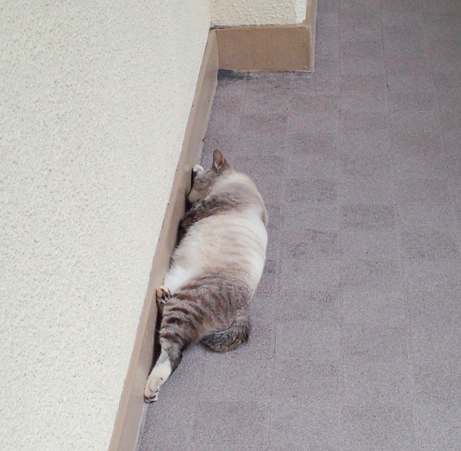 帰りに またまた 廊下で猫に遭遇しました。壁ドンで寝ていましたwww