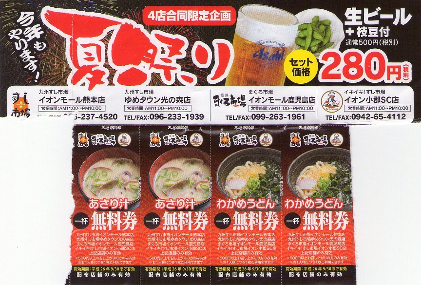 お店に入る時クーポンをもらえばいいです。