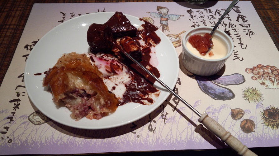 デザートをうっかり 普通の皿にのせてしまったので汚くなった。