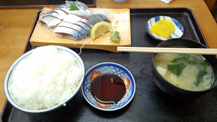 いつもの「市場食堂」で、いつもの「しめさば定食」を注文(-_-;)