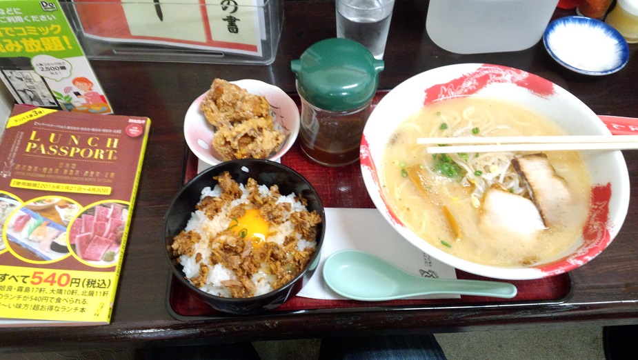 (ほんやラーメン + 刻みチャーシュー入り玉子めし + 桜島鶏のからあげ(2個))