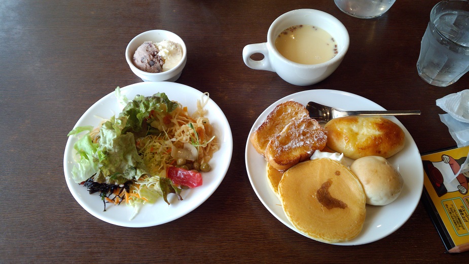 メインがテーブルにくるまで、パン・パンケーキ・フレンチトースト・サラダ・アイスクリームなどビュッフェなので 先に準備し食べていたら、
