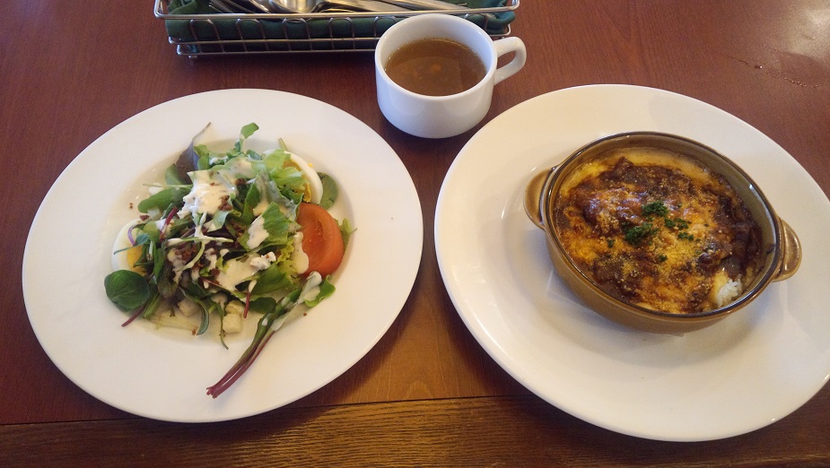 「カッテージチーズのシーザー風サラダ」+ビーフドリア+スープを注文。