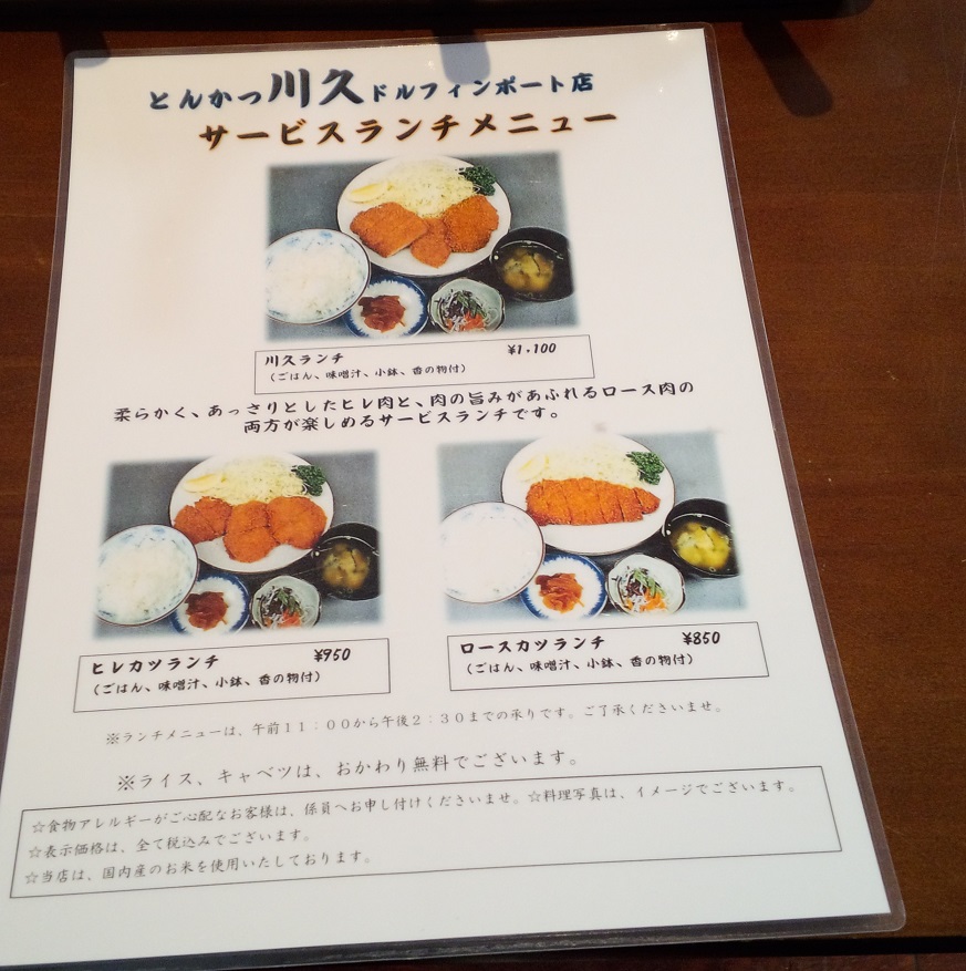 ドルフィンポート内にある「とんかつ川久」に行ってきた。