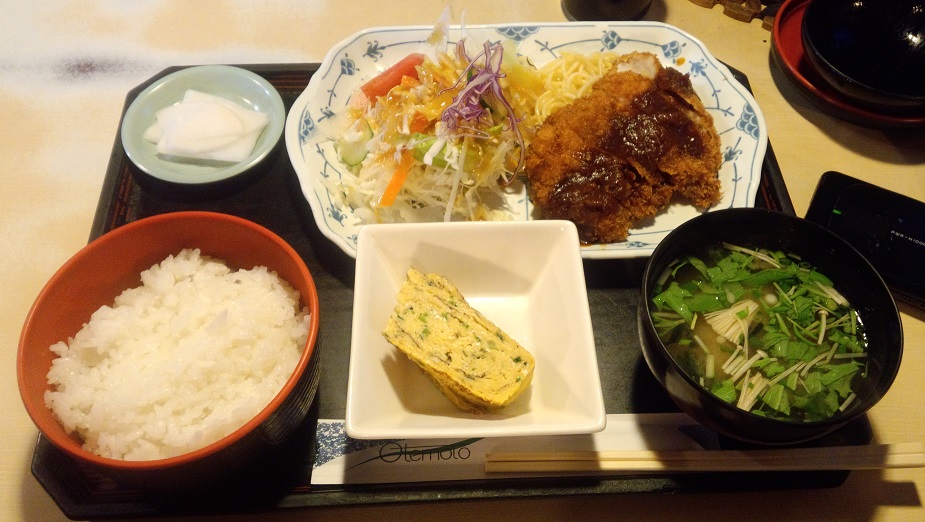 きょうは 日替り定食で「チキンカツと玉子焼定食」にしました。