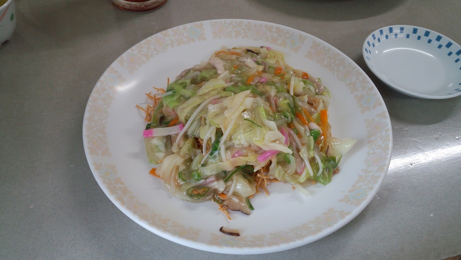 昨日のお昼は「長崎ちゃんぽん」の「野菜たっぷり皿うどん」(焼きそば)だったんだけど