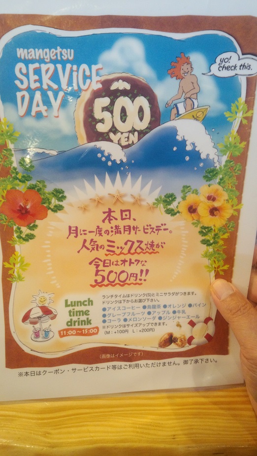 今日は満月サービスデーなので 「満月のお好み焼き」へ行った。