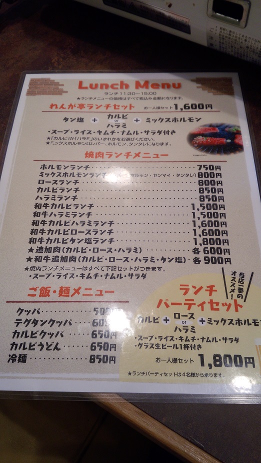 最近開店した焼肉屋さんで「れんが亭」ってところへ行ってきた。