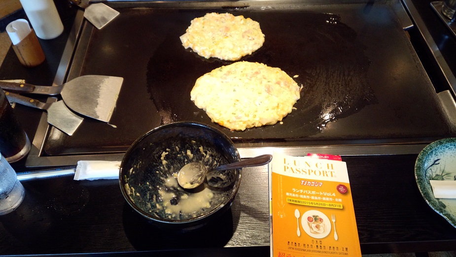 ここは自分で作るみたいだ。具を混ぜたり 鉄板に敷いたりは問題はないけど
