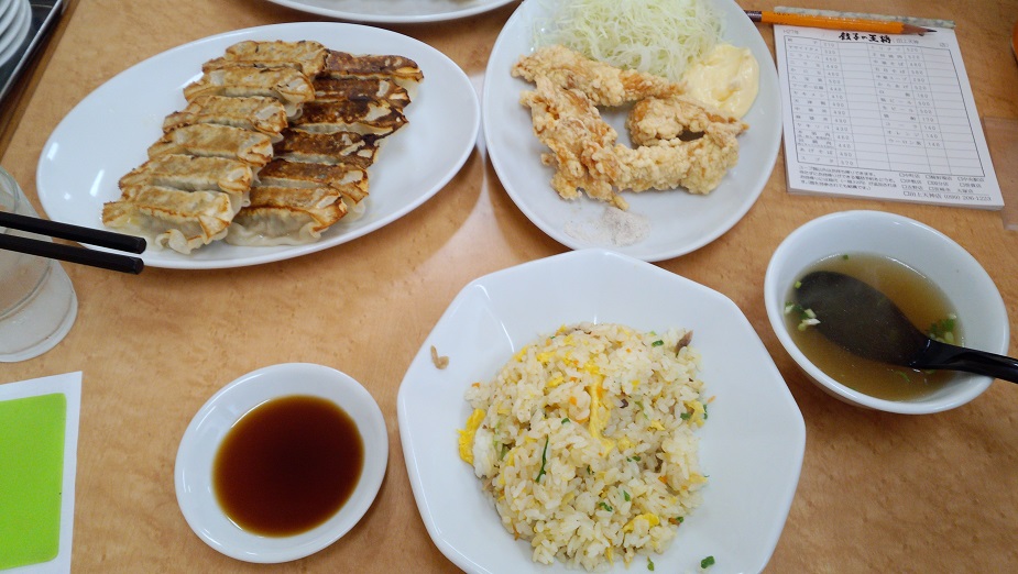 「餃子」を2人前と「唐揚げ」と「ヤキメシ」を注文。