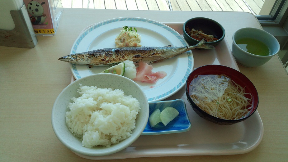 今日の日替ランチは「新秋刀魚の塩焼きと五目キンピラ」だった。