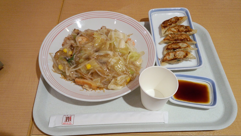 今日は「長﨑皿うどん」と無料の「ぎょうざ(5個)」にした。