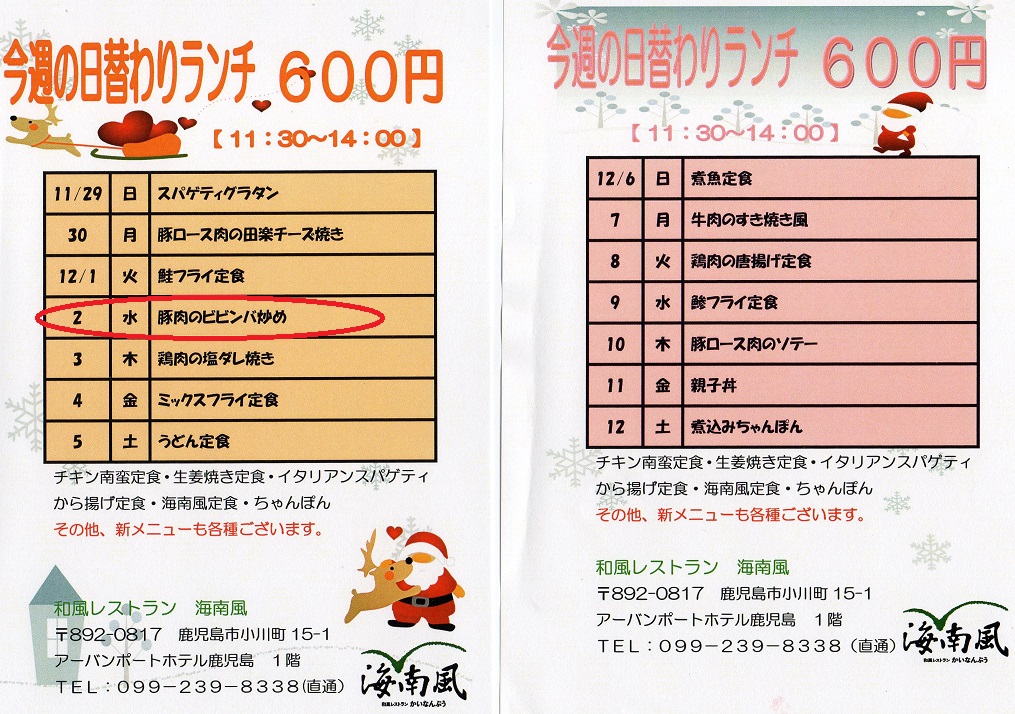 食べ終わって会計の時、今週の日替りランチのスケジュール表があったので