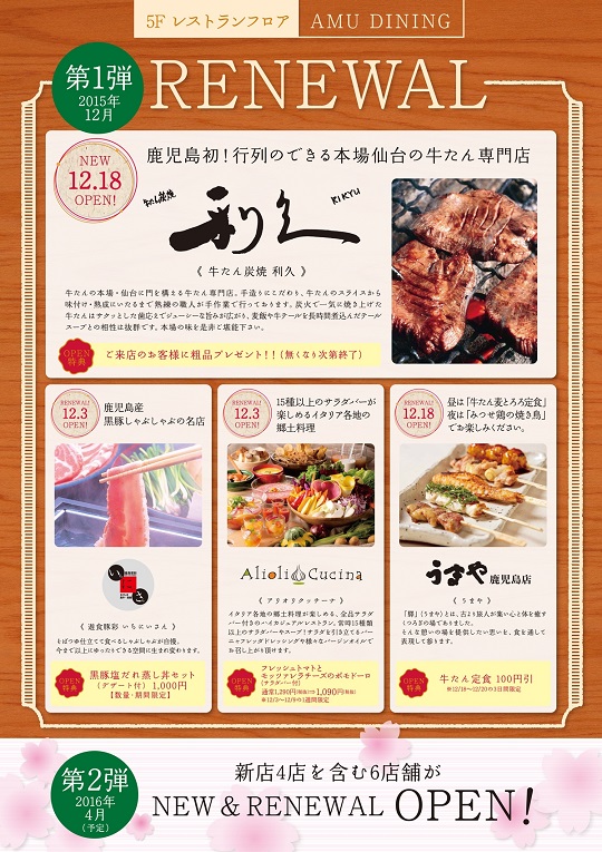 アミュプラザ5階のレストランフロアが12/3にリニューアルしたので、