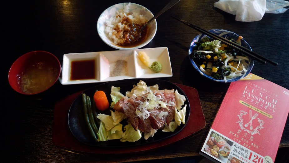 今日はいつものランパスメニュー¥540ではない「プレミアムランチ 黒毛和牛スライスイチボステーキ」にしました。