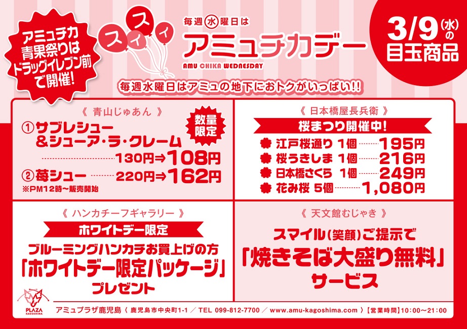 今日 水曜はアミュプラザ地下が「アミュチカデー」の日。