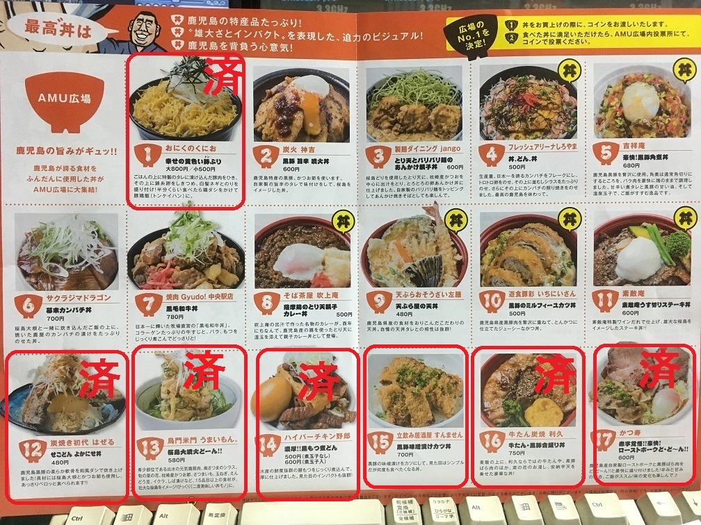 アミュ広場には 17種類の「丼」が競っていたが