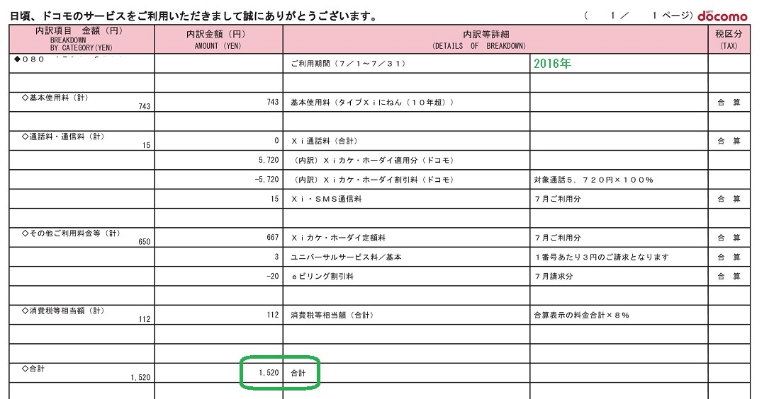 スマホを iPhone に替える直前の請求書は以下 ↓ の通りで