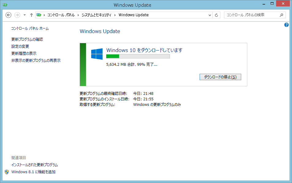 ③Windows Updateを見てみると Windows10のダウンロードが始まっている。