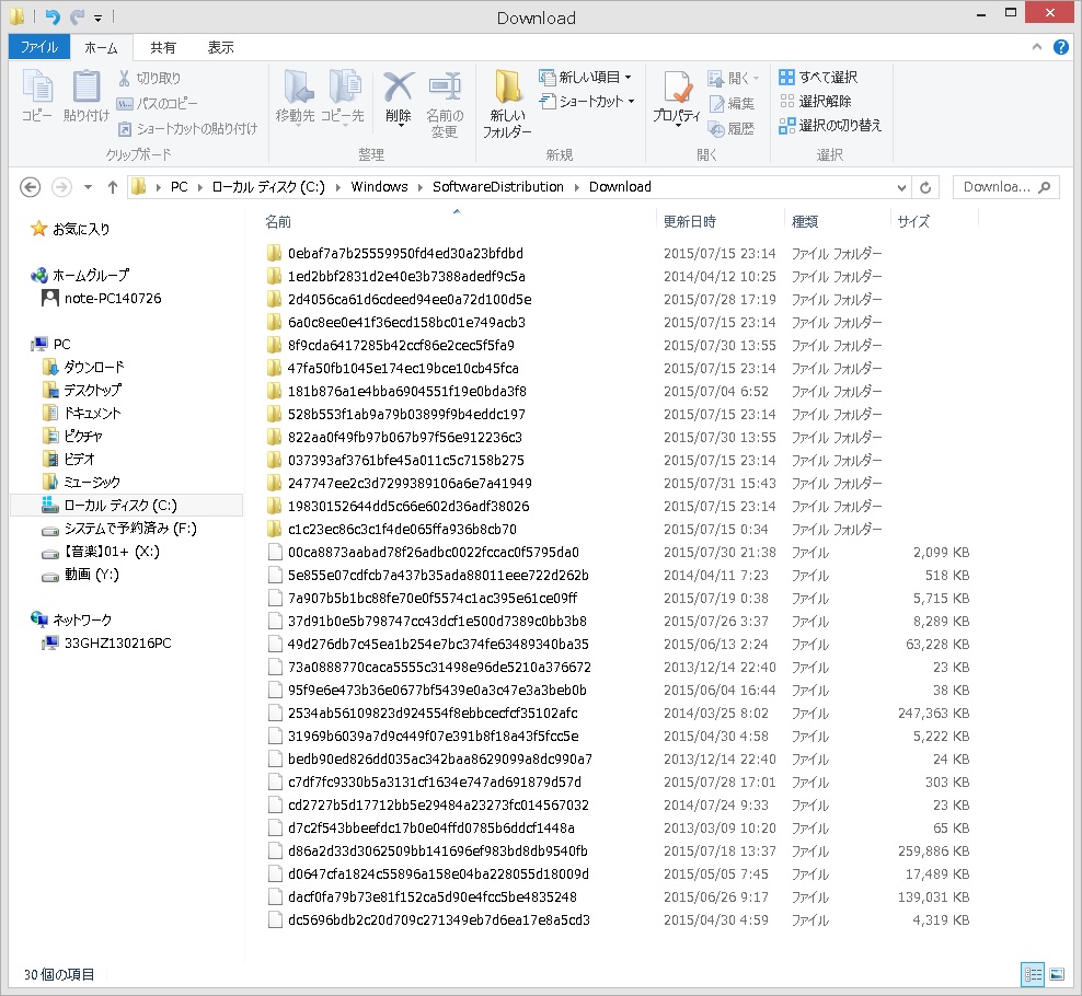 ①C:\Windows\SoftwareDistribution\Download" 内のフォルダおよびファイルを全部削除